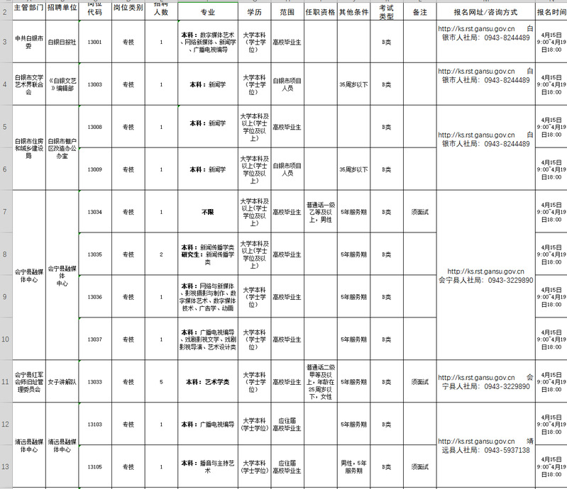 甘肃省招聘信息如下: