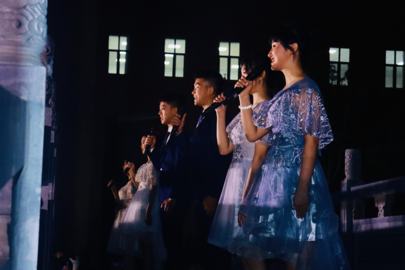 晚会现场,观众们直呼“不过瘾”,沉浸在这场视听盛宴中,歌曲《声声慢》舒心悦耳,少女们身着汉服,在如意湖畔婉转灵动地唱出每一句歌词;四位男生用情用心朗诵《少年中国说》,以铿锵有力的声音和饱满的情感征服每一位观众。