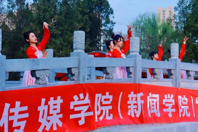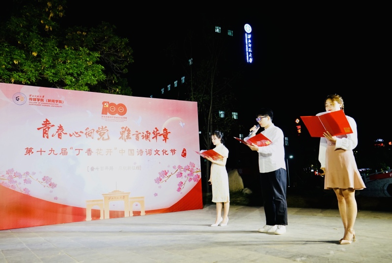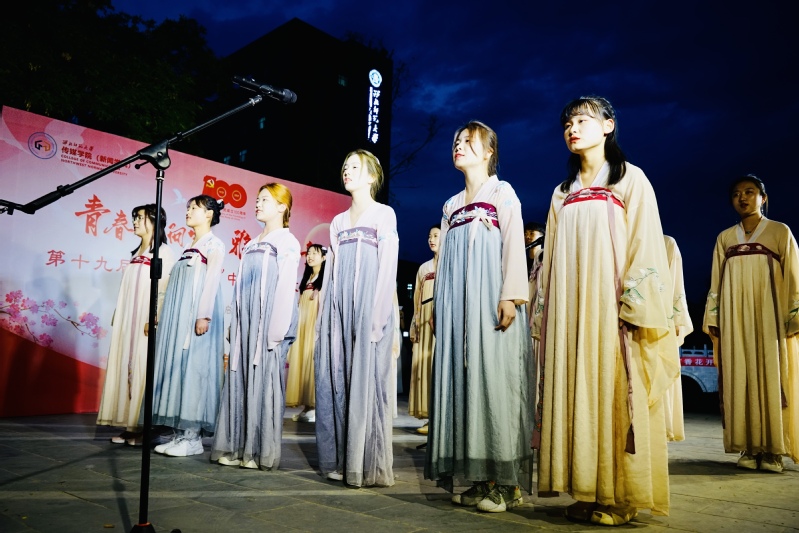 传媒学子将自己的信念化为悦耳的歌声、婀娜的舞姿、深情的朗诵,歌颂着、赞叹着中国共产党的光辉形象,展示出自身拿稳时代接力棒,将红色精神薪火相传的昂扬斗志。