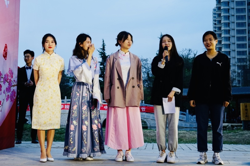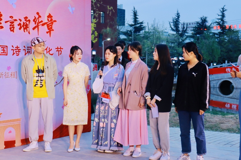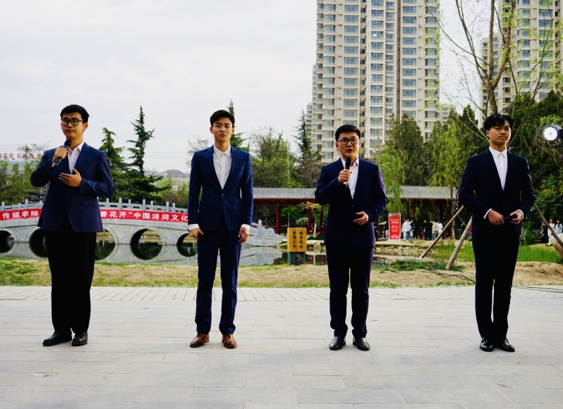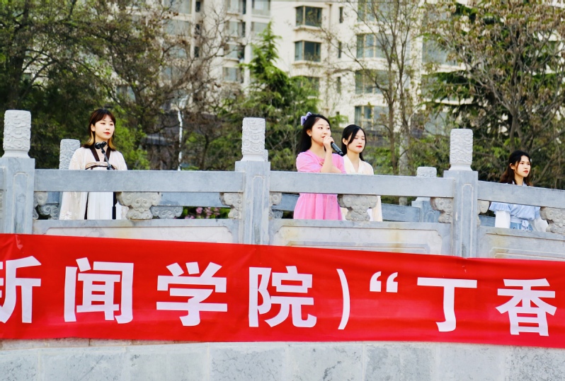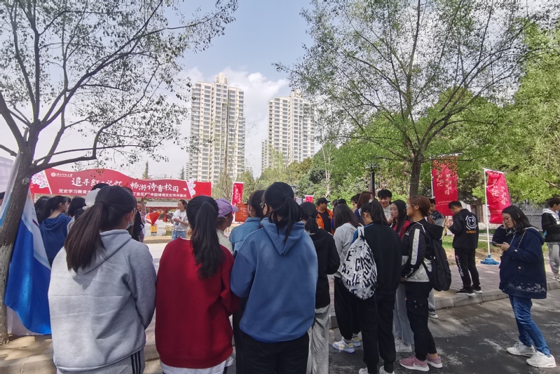 4月12日,金沙990活动大厅举办党史学习教育主题游园会暨第19届“丁香花开”中国诗词文化节开幕式。传媒学子在燕园、秦园、陇园、如意湖等处领取“闯关卡”,以趣味游园的方式进行党史知识在线竞答、红色诗词接龙以及党史谜语竞猜,身体力行做到学史明理、学史增信、学史崇德、学史力行。