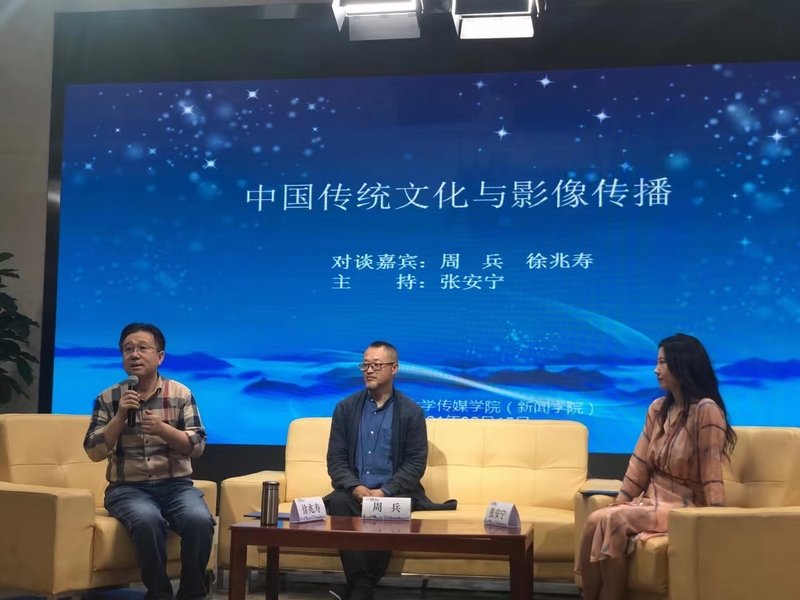 周兵导演向大家讲述了自己拍摄经历与制片经验,从中国传统文化与影像传播相结合的角度,讲述了在当下影像时代中传统文化传播与再生产问题。徐兆寿教授向同学们分享了自己研究兴趣与重心逐渐向传统文化靠近的治学经历,形象生动地讲述了传统文化与我们日常生活之间密不可分的关系。