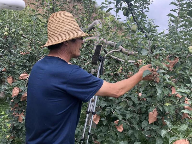 手机成为新农具,直播成为新农活。礼县龙槐村“三农”自媒体达人张加成每天来到果园,除了锄头等农活用具,手机直播架成为他带到果园的必需品。
