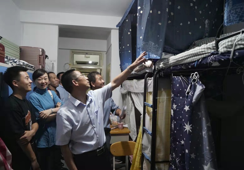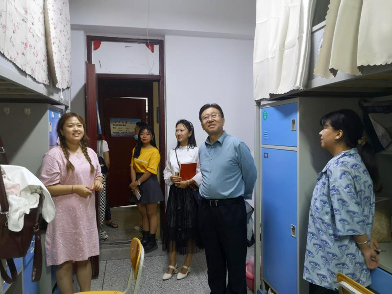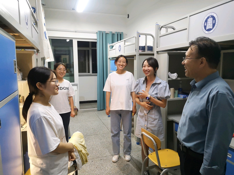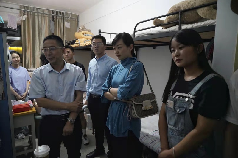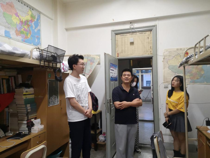 在走访新生宿舍过程中,老师和同学们进行了亲切的交谈,详细了解新生入学后在住宿、生活方面的问题,特别叮嘱新生们遇到困难要及时和老师反映,重视在日常学习和生活中的各方面安全。