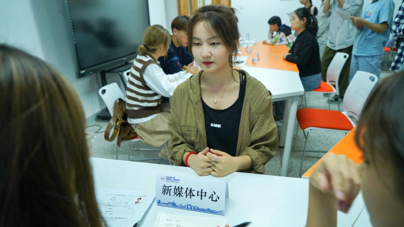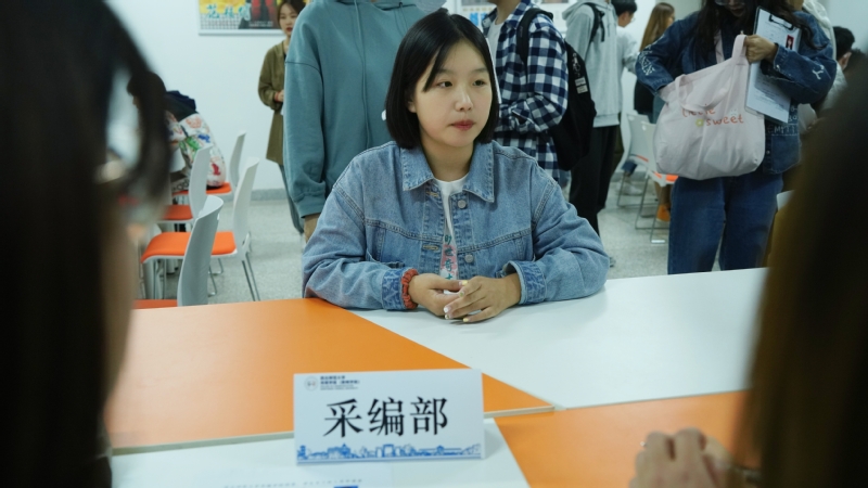 高海宁是来自2021级播音与主持艺术1班的一名学生,对于正在准备面试的部门,她表示:“我的专业虽然是播音,但是不妨碍我热爱报道和采写。我是抱着一个学习的心态来到这个部门。我知道在这里也许会很累,但是我很想报道活动、采写文章,累也没关系,对我来说是能够学到我所热爱的东西。”