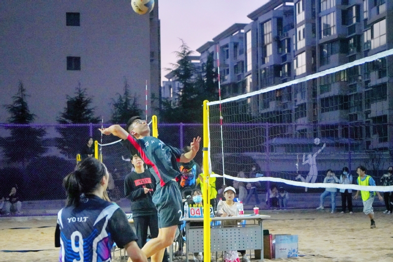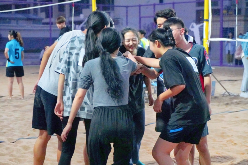 适逢第72个国庆节,为响应学校五育并举的号召,激发青年大学生参加体育锻炼的积极性,促进同学间的学习与交流,培养团队的合作意识,弘扬女排精神,展现青春风采。金沙990活动大厅特举办2021年兰天公寓“献礼国庆华诞、落实五育并举”男女混合沙滩排球赛。 “南山与秋色,气势两相高。”9月28日上午12点,排球赛在兰天公寓沙滩排球场拉开了序幕。 开幕式 本次比赛有12支队伍,比赛采取淘汰制,男女队伍抽签进行两两决赛,直至决出冠军。比赛由体育学院负责裁判工作。