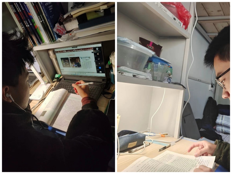 2021级广播电视编导和新闻学专业的男生们,也在宿舍开展了读书学习。