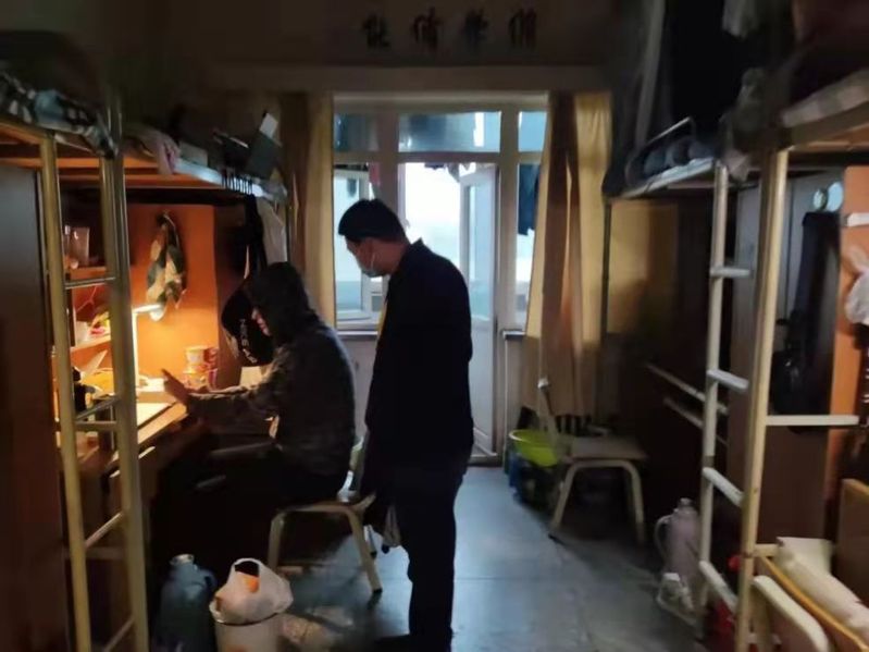 随后,杨院长走访研究生宿舍。正值学生线上上课,课余时间,杨院长向同学们询问线上课程的学习情况和意见,同时,对宿舍卫生及近期消杀情况进行了细致检查。杨院长嘱咐同学们,防疫期间学习态度不可松懈,要合理分配时间,提高学习效率,在寝室也要按时上课,认真听好每一节网课。他叮嘱同学们对于疫情防控也绝对不能掉以轻心,做好寝室卫生,按时消杀通风,鼓励大家利用课余时间多做运动,保持身心健康。