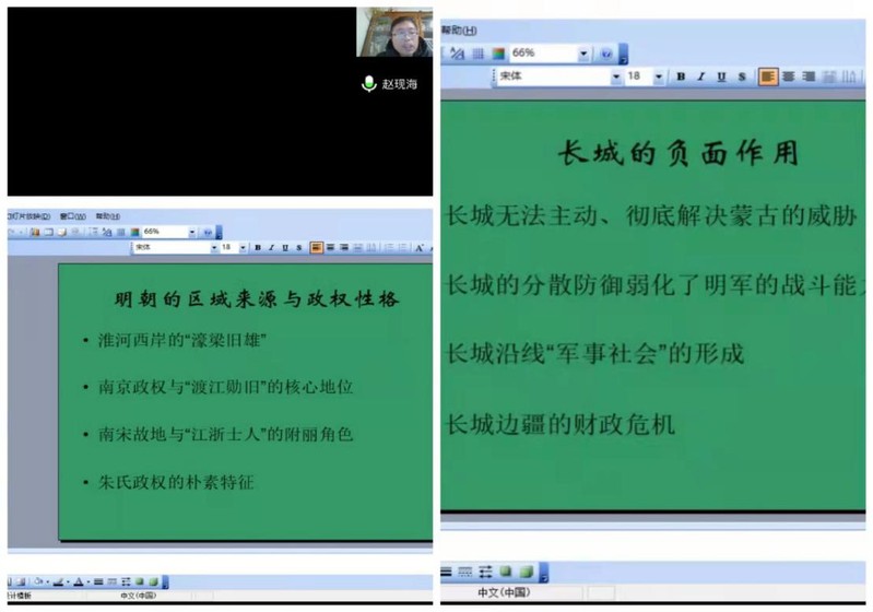 2021年11月11日下午,学院特邀著名学者、中国社会科学院古代史研究所研究员、明史研究室主任赵现海为我院师生作了题为《明长城时代从甘肃走来》的线上学术讲座。讲座活动由徐兆寿院长致辞,学院张哲玮老师主持,学院师生近百人参加了此次讲座。