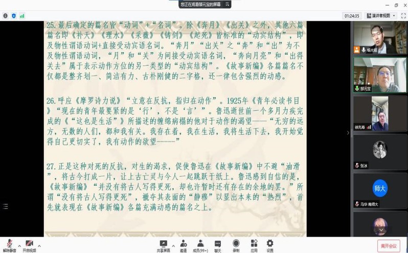2021年11月16日,复旦大学中文系教授、博士生导师郜元宝教授应邀为我院师生在线开展了题为《鲁迅<故事新编>改名记——以<非攻><理水>手稿为中心》的学术报告,学院100多名师生在线收听了此次学术报告。