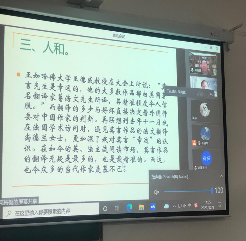 2021年12月1日下午,复旦大学中文系教授,博士生导师栾梅健线上为传院师生作了题为《一个文学黄金时代的诞生——对近三十年中国当代文学的观察》的讲座。金沙990活动大厅徐兆寿院长做了会前致辞,青年教师张丽华博士担任本次讲座主持。
