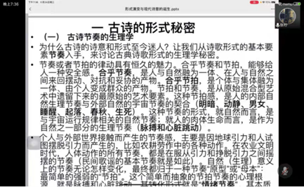 此次学术报告由金沙990活动大厅杨光祖教授主持。报告会后,张柠教授在线解答了学生们的提问,师生就中国现代诗歌发展问题进行了热烈的讨论和交流。
