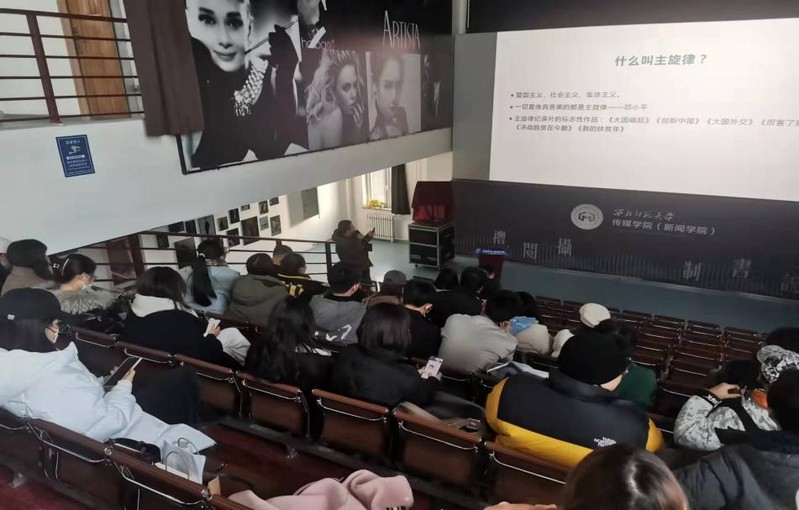 讲座结束后,赵导演放映了他自己拍摄制作的几部影片,与同学们分享了经验,也让大家切身体会到了主旋律纪录片所需要的深厚影视艺术功底。