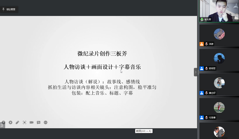 2022届硕士研究生李兆军在2020年至2021年间担任金沙990活动大厅研究生会副主席,并连续两年获得学业一等奖学金,同时创作的影片荣获第18届广州大学生电影展一等奖等多项奖项。他主要就纪录片的三度创作为同学们做经验交流,从前期策划、中期拍摄、后期剪辑三方面为大家详细地讲解纪录片创作过程中需要注意的问题。