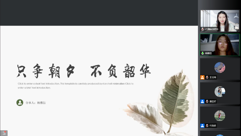 2022届动画专业本科生王帅向同学们介绍了自己丰富的社会实践活动以及专业实习经历,鼓励大家多参加实践活动,并表示在这些活动中会有意想不到的收获。他以“成功只有和勤奋作伴,才能如虎添翼”结尾,鼓励同学们敢于拼搏,去拥有一个无悔的大学生活。