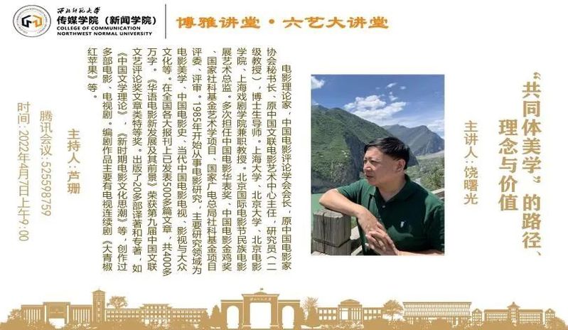 4月7日早上,中国文联电影艺术中心主任饶曙光教授为我院师生开展了题为《“共同体美学”的理念、路径与价值》的学术讲座,讲座由金沙990活动大厅副教授芦珊老师主持,学院近百名师生参加。