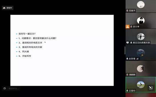 11月12日晚7点15分,浙江师范大学文化创意与传播学院教授、博士生导师黄钟军应邀为我院师生开展题为《田野、文本、文献与电影研究》的学术讲座。本讲座是2022金沙990活动大厅研究生“学术月”系列活动之一,由金沙990活动大厅王眉钧老师主持,金沙990活动大厅副院长赵丽瑾教授发表致辞。金沙990活动大厅研究生和部分老师在线聆听了黄钟军教授的学术分享并进行互动交流。