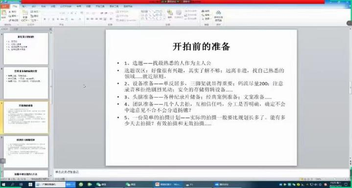 讲座伊始,王鹏导演明确了拍摄纪录片的目的,并且细致讲解了“该如何准备纪录片的前期文案”这一问题。他指出,在进行纪录片拍摄前,“只规划时间,而不规划内容”。王导同时强调,在开拍之前需要做充足的准备,并围绕“选题方向”“设备准备”“头脑准备”“团队准备”“拍摄计划”五个方面进行深入讲解。对于选题方向,王鹏导演指明了选题误区:应该选取自己感兴趣并且有一定了解的事物和人物,而不是跟随大众、选取热门的话题进行拍摄,应遵循“就近原则”。