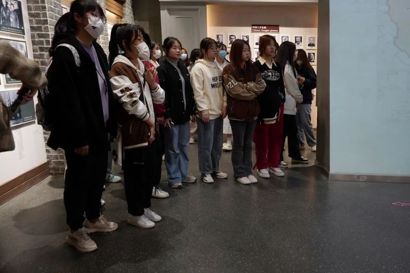 走上二楼展厅,同学们跟随讲解员的脚步了解“生命之光——卓越贡献”的相关板块。一张张生动的历史图片、一幕幕逼真的复原场景,让同学们印象深刻。通过参观,大家对“艾黎精神”有了更加深入的了解。