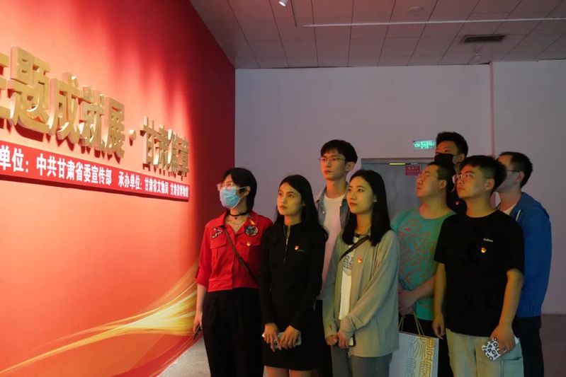 在甘肃省博物馆内,我院学生重点参观了“红色甘肃——走向一九四九”主题展厅,并重温了入党誓词。步入展厅,一件件丰富翔实的革命文物,一幅幅珍贵生动的历史画面映入眼帘,革命先辈们为民族独立、国家解放、人民幸福而前赴后继与不懈奋斗的伟大情怀让同学们内心深受震撼,感触颇多。