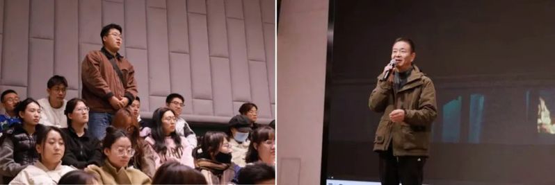参加“导演工作坊”的同学结合个人拍摄中的问题和思考,向导演积极提问。2023级广播电视专业硕士研究生张恒超提出:“纪录片如何吸引不同年龄段的观众?”赵国鹏导演以自己的亲身创作经历为例,告诉同学们在纪录片创作前期要做好充分的调研工作,在此基础上对受众群体进行划分,再结合目标受众的收视习惯最终确定片子的整体基调。