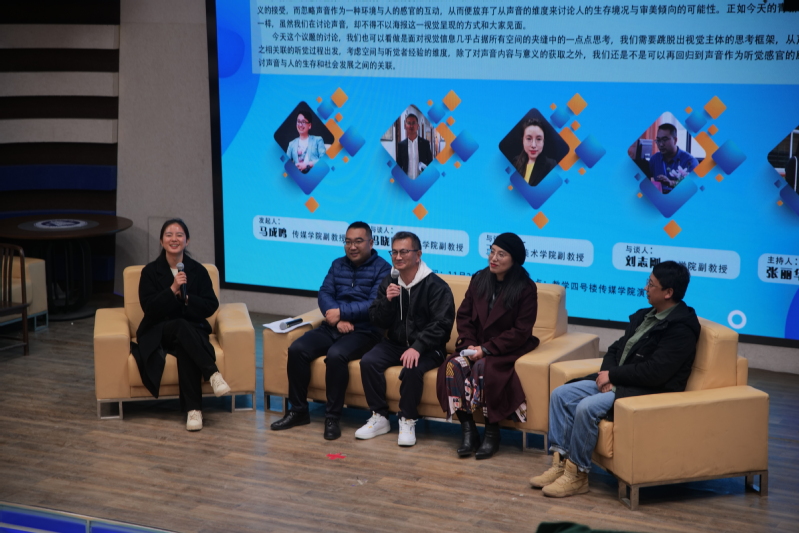 文学院副教授刘志刚、美术学院副教授王莹,金沙990活动大厅副教授冯晓临、张丽华分别从媒介和声音的关系、声音的意义、声音和视觉的关系、声音和空间的关系等角度发表了观点。台下部分老师、同学也相继结合自身工作、学习经历发表了感想。