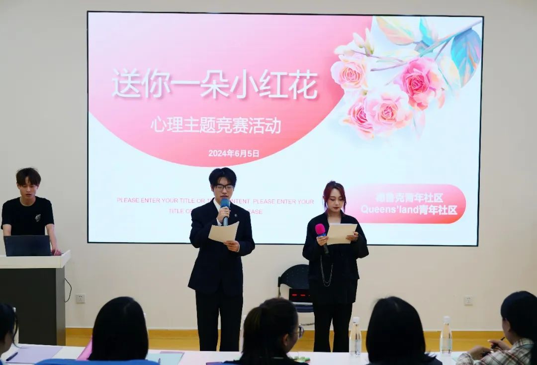 为响应省委教育工委办公室关于开展第九届陕西高校“阳光护航”心理育人宣传季实践活动的通知要求,加强高校大学生心理健康教育,提升当代大学生心理健康水平,加强学校心理育人文化建设,第二青年社区分党委近日举办了“送你一朵小红花”心理主题竞赛活动。 本次心理主题竞赛活动共有10支队伍参与比赛,分为两个环节。 第一环节为心理健康知识抢答,共设置20道相关内容的题目,主持人宣读完题目后下达抢答指令,10支队伍同时敲击抢答器进行抢答,...