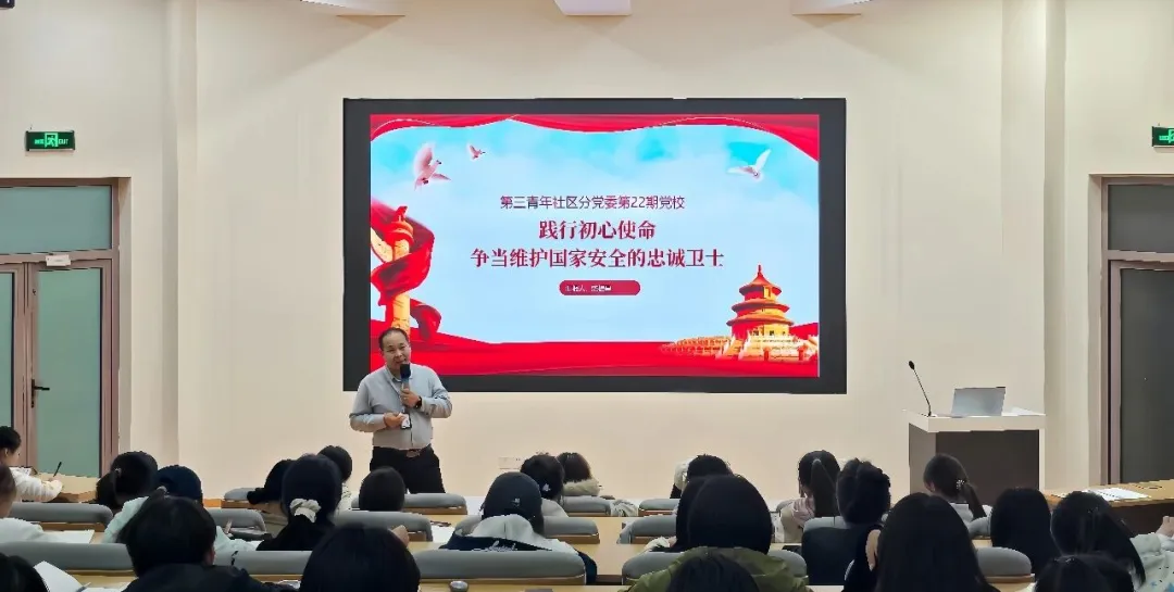 为深入学习贯彻总体国家安全观,增强大学生入党积极分子的国家安全意识和责任担当,第三青年社区分党委于11月4日在西C-001开展了一场以“践行初心使命争当维护国家安全的忠诚卫士”为主题的专题党课。本次党课由第三青年社区分党委书记陈振星主讲,110名入党积极分子参与现场学习。党课伊始,陈振星书记从中国共产党人的初心使命与维护国家安全的必然联系出发,深刻阐述了国家安全是民族复兴的根基,是实现一切发展目标的基本前提。...