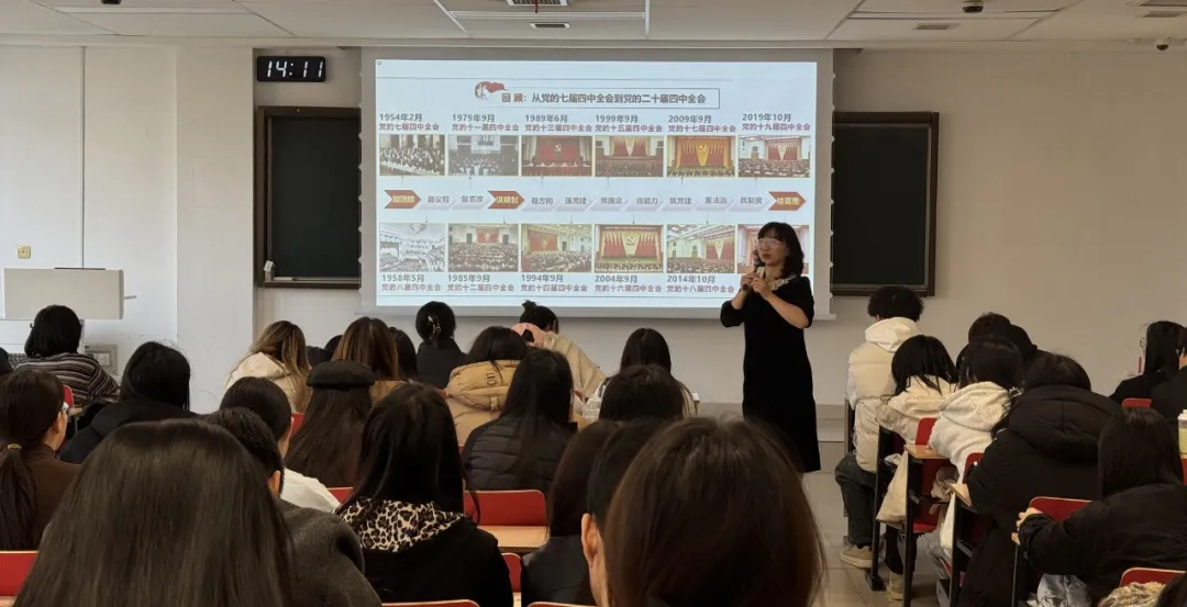 为了引导广大党员干部群众准确把握全会精神的核心要义、精神实质与实践要求,第二青年社区分党委于11月12日14:00在北C-309开展主题党课,本次的党课由杨少玉老师主讲,98名积极分子参与。杨少玉老师在党课中总结到二十届四中全会的召开,标志着中国共产党在新时代治国理政的理论和实践进一步深化,为全面建设社会主义现代化国家、实现中华民族伟大复兴的中国梦提供了坚强有力的制度保障。各级党组织和广大党员干部要以高度的政治责任感和历史使命感,...