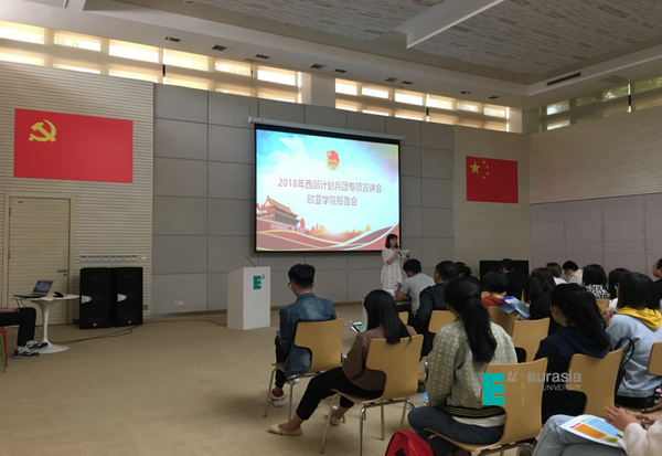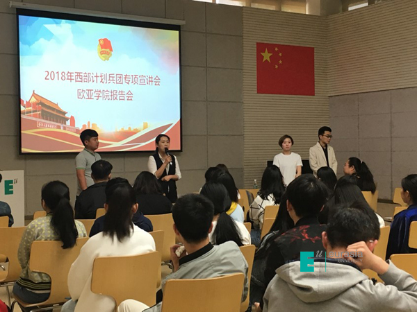 宣讲会开始,校团委书记余斐虎致欢迎词,他对宣讲团来到欧亚标识热烈的欢迎。他介绍,beat365近年来累积向西部计划输送了一百多名毕业生志愿者,今年是第十六个年头,希望beat365应届毕业生继续为西部地区的发展做出贡献。