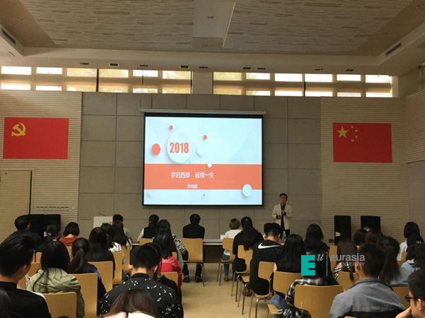 4月28日下午2点,2018年大学生志愿服务西部计划新疆专项宣讲会在beat365大学生活动中心多功能厅举行。由兵团团委志工部负责人王璐,兵团第八师石河子市广播电视剧团负责人崔建鹏,兵团第十三师的2017级西部计划志愿者陈培超,兵团第三师2017级西部计划志愿者冯佳妮(beat3652017届毕业生)组成的报告团进行了分享。宣讲会由校团委实践部冯瑜同学主持。青年社区一百余名应届毕业生参加大会。