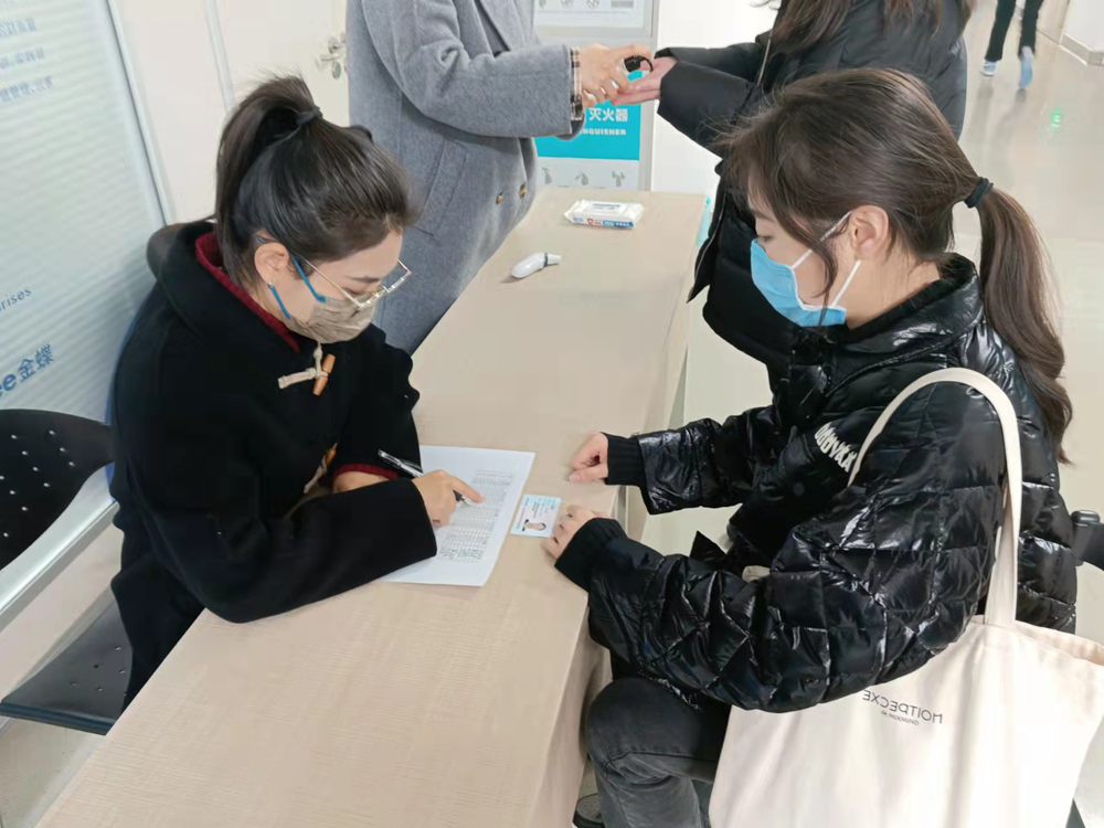 (图五)张超洁老师在给考生测量体温