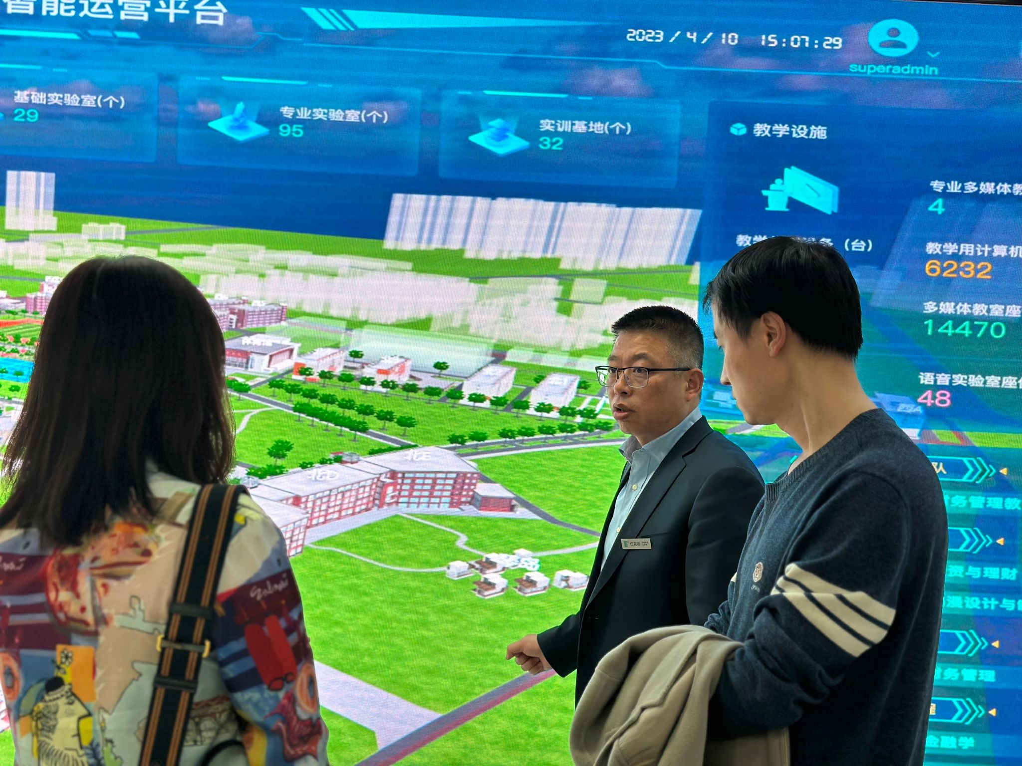 王运思副处长一行实地考察了学校110指挥中心、北E教学楼、虹桥中心、南客厅、图书馆、行政中心等地,并对学校的校园建设、环境改善、学生生活服务、园区智慧运营等方面给予认可。随后,双方就后勤管理与服务模式具体开展座谈交流。