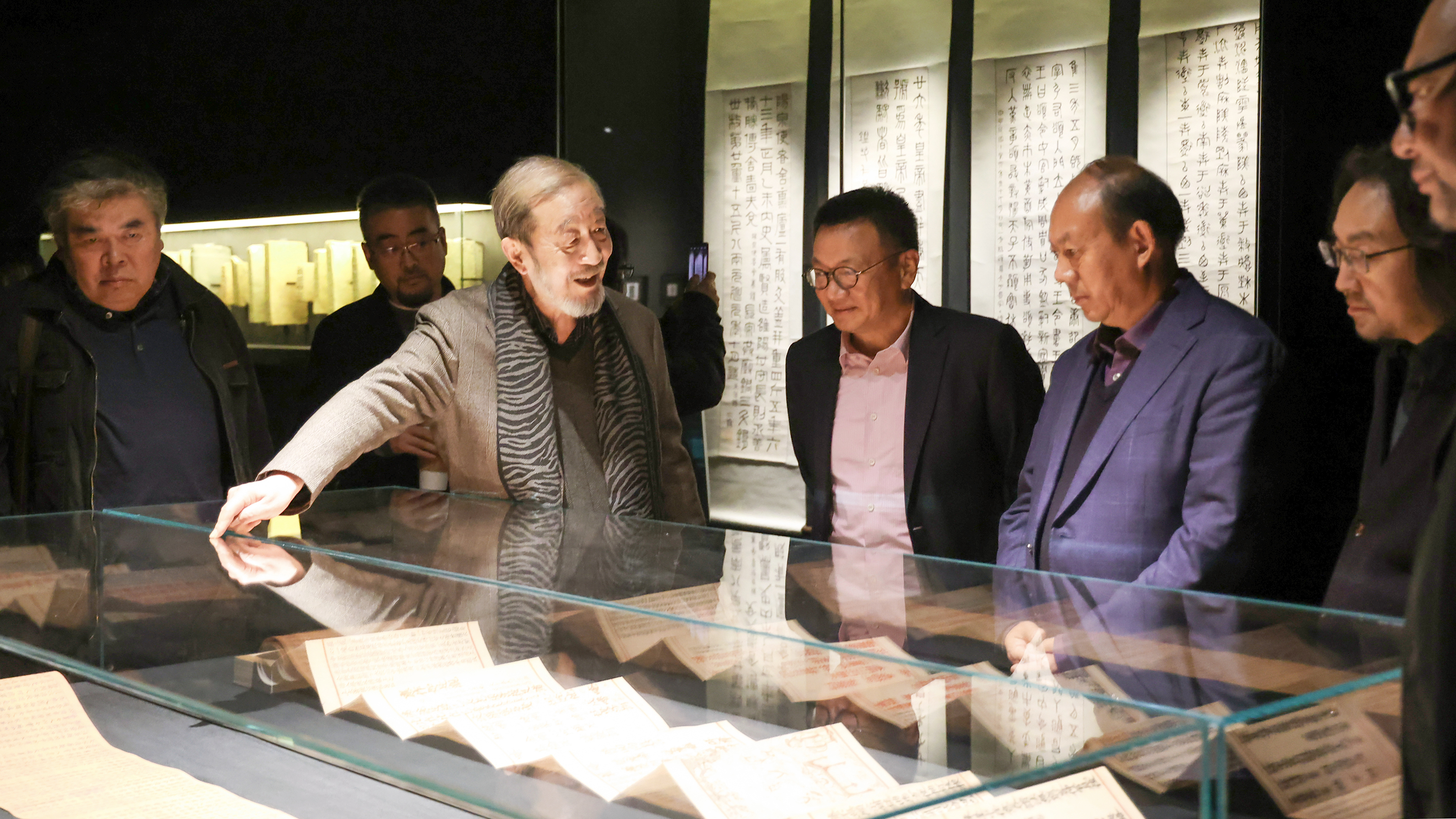 (图一)党晟先生(左三)与嘉宾在中国馆展区交流