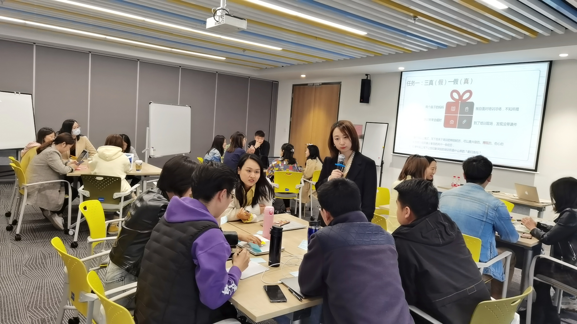 A:我有一节课就是模拟企业管理,学生分成了七个组,一个组是领导小组,另外六个组扮演了这个组织当中的不同部门,每个小组会有任务书、会有图样,一共有七个图,每个图拼出来的分值是不一样的。他们需要用这些不同的板子来拼出来图,那么问题正是他现在手上所有的板子都没有办法把这几张图拼完。例如你需要一个蓝色的板子,只有别的组才有,那么就需要通过“领导”去跟其他拥有去协调和沟通,这样才能完成拼图的任务。
