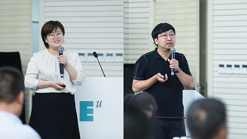 (图四)教务处副处长张娜和艾德艺术设计学院郭治辉老师作教学改革分享