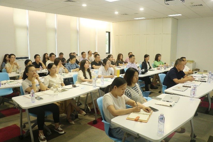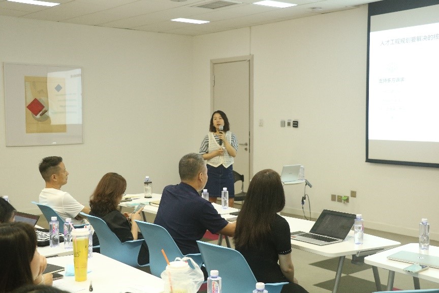 随后,进入部门分享环节。首先,人力资源部张李红老师结合学校“十四五”总体发展规划要求,重点对“十四五”期间人力资源工作的主要目标、重点举措和保障机制进行了分享。学校的人力资源工作将坚持“以教师为本”的理念,围绕组织、人才、文化和数字化四个方面开展工作,同时也通过组织、财务和机制三个层面为学校总体目标的达成提供充分保障。人力资源的工作在支持学校战略落地的同时,也要让教职工在组织中得到更好的发展,拥有良好的职业体验,不断提高成就感、归属感和幸福感。