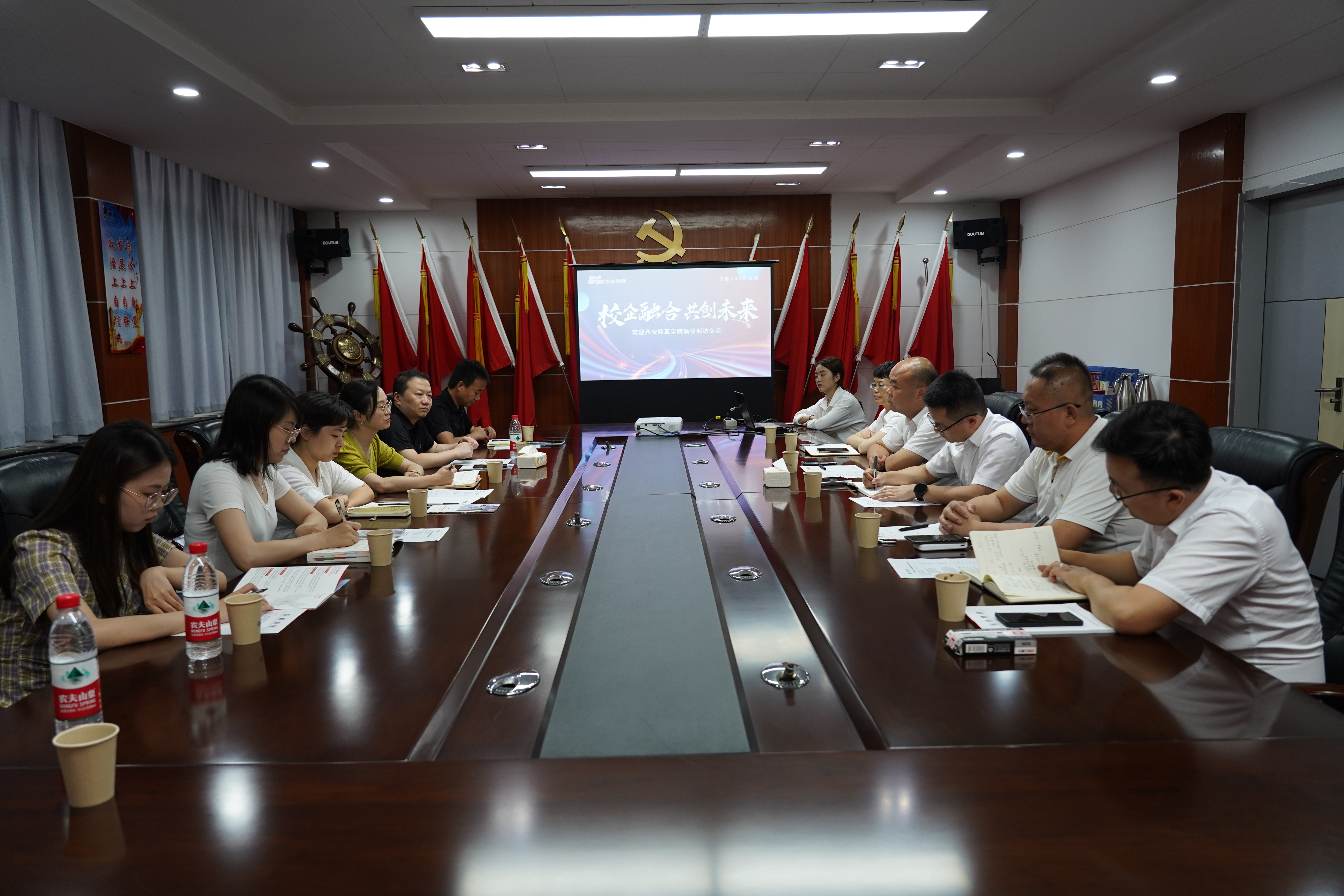 2022年6月24日,beat365工商管理学院院长助理陈哲带队国际商务专业教师代表、学生代表赴东岭集团走访调研。东岭集团关中片区总经理刘佩、陕西东岭现代物流有限公司总经理赵海龙、西安德邦钢铁物资有限公司总经理拓全、片区财务主管杨帆、片区办公室主任张鹏进行接待。我院与东岭集团进行校企合作签约授牌,双方就合作形式内容,协同推进产教融合展开讨论。