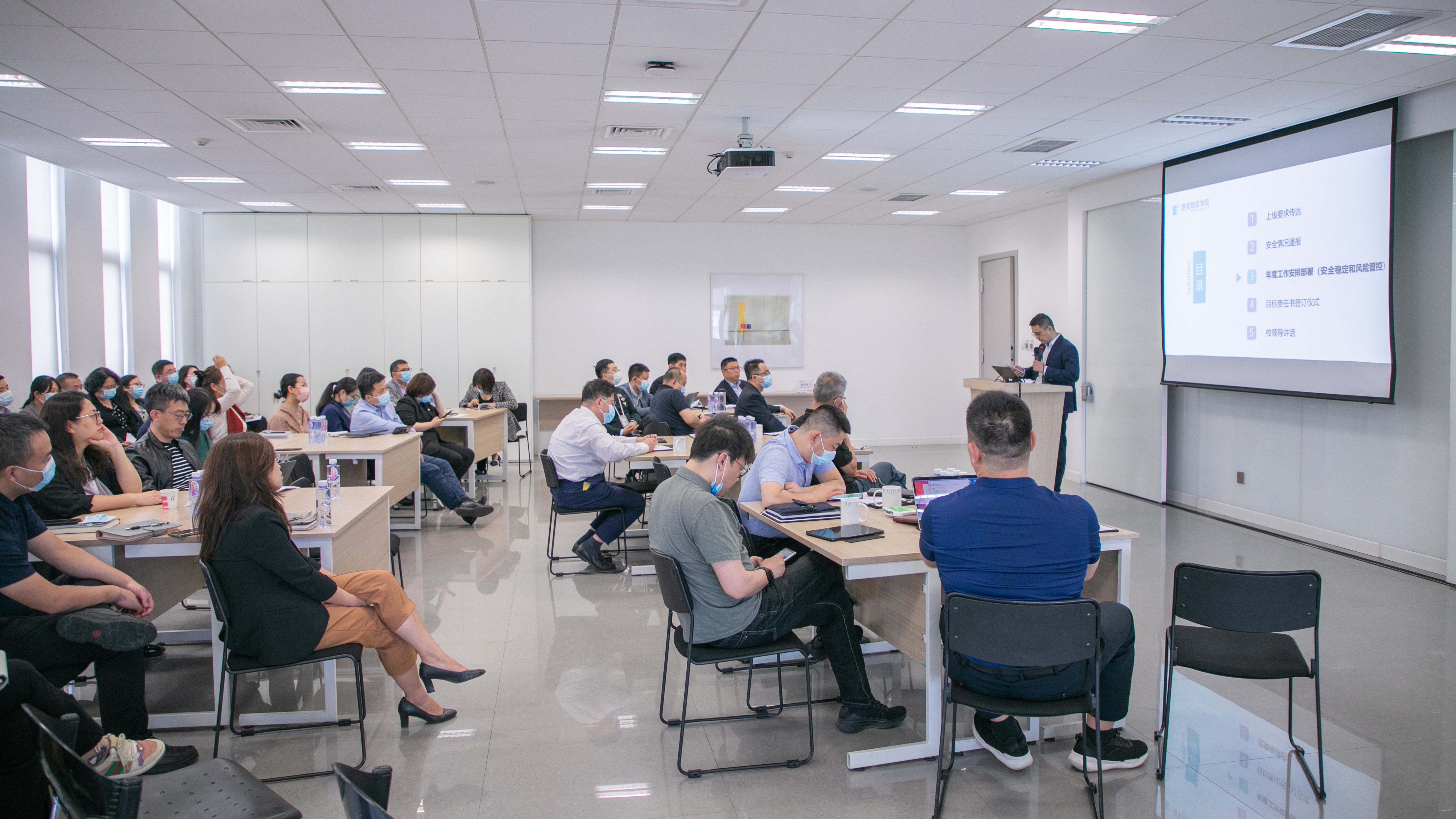 学校安全稳定办公室主任任龙刚从学校安全稳定、风险防控、校园安全管控、学生安全管理、传染病防控等五个方面进行了2022年年度安全稳定和风险管控重点工作安排部署,要求各相关部门要对照安全稳定任务落实好主体责任,围绕学校战略重点,进一步加强安全稳定组织领导,完善风险管控工作机制,统筹做好学校安全稳定工作,提高安全主体责任意识和风险防控意识,营造预防为主的氛围,确保学校无重大安全责任事故,无群体性、政治性等事件发生。