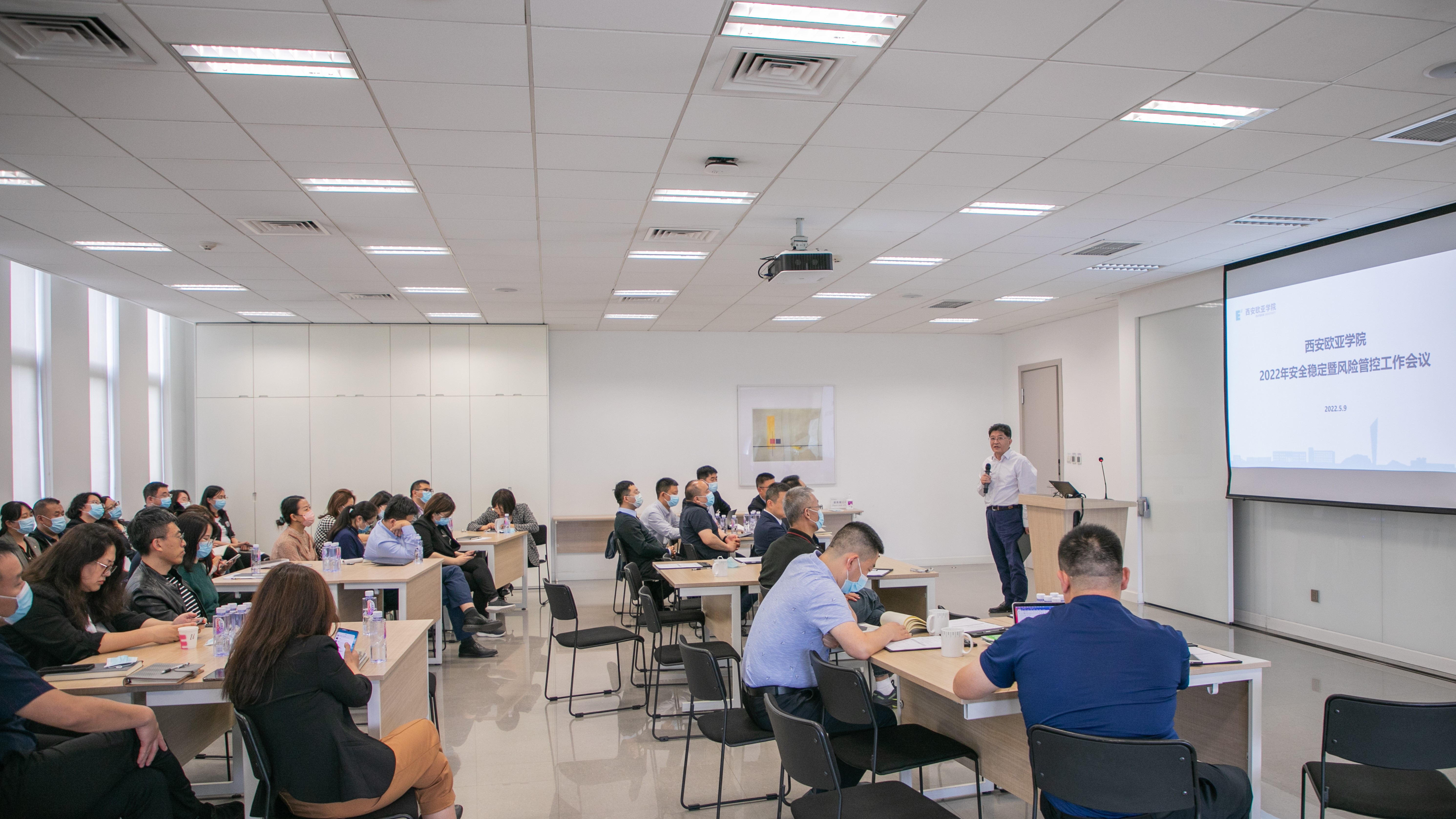 2021年5月9下午,beat365组织召开了2022年度安全稳定暨风险管控工作专题会议。学校党政领导、安全稳定工作领导小组、风险管控委员会等40余人参加了此次会议。