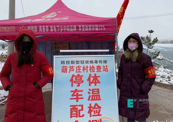 在这场防疫志愿工作中,学生党员们协助村干部统计本村回乡人员信息,虽然天气十分寒冷,但他们并无任何松懈,始终坚持在岗位,对进村的外来人口、车辆进行仔细询问和排查。凌冽的寒风中,每一个关卡,拦住的是瘟疫,留下的是人间大爱。