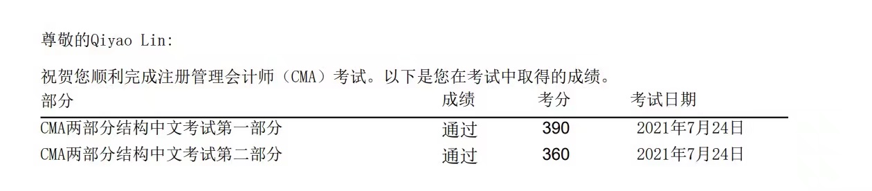 2021年度CMA奖学金获得者黄玄及林祈瑶均已顺利通过CMA全阶段考试。