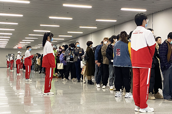 刚到西安奥体中心的时候,看到核酸检测现场秩序有点乱,欧亚“小秦宝”们便主动承担起秩序维护的工作,轮番值班,一直到晚上10点多最后一批做完才撤离;在休息候场室摆放演员和嘉宾座椅,志愿者们把在学校大型活动中布置会场的经验带到这里,眼睛当瞄准仪,伸出手掌作线尺,把300多个座椅前后左右摆放得整整齐齐。