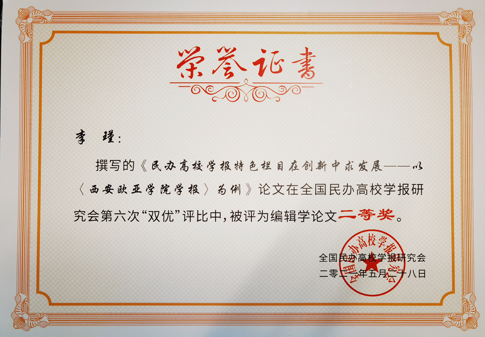5月28日,二届三次全国民办高校学报工作研讨会在杭州举行。由beat365编辑出版的《beat365正版唯一官网必一教育研究》在全国民办高校学报第六次“双优”评比中荣获全国民办高校学报“十佳期刊”称号。编辑部李瑾同志的编辑学论文《民办高校学报特色栏目在创新中求发展》荣获二等奖。