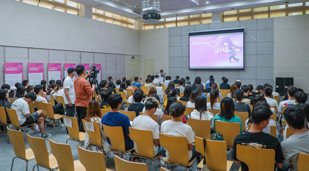 现场展示了各分院实习专员的采访视频,他们从各个角度阐述了学校为实习生提供的服务与支持,希望同学们能够把实践与理论相结合,为就业打下坚实的基础。活动最后,就业服务与职业发展中心处长王一冰代表学校发布“心动的实习offer”启动月系列活动安排。