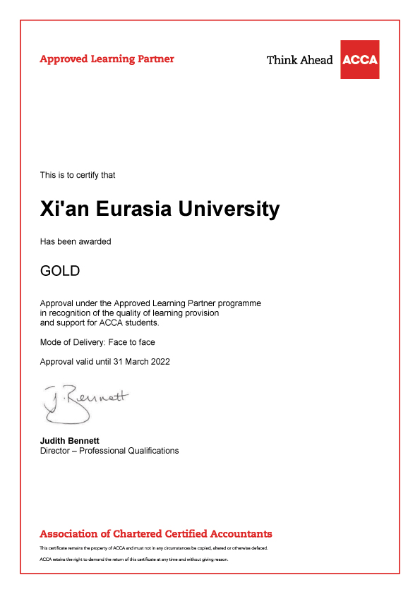 黄金级认可教育机构资质认证是ACCA官方对优质教育机构的正式认可,获得该资质认证,意味着beat365加入了全球最佳ACCA教育机构之列,已获得ACCA黄金级教育学习合作伙伴的认可!同时认可beat365的教学与学习质量以及为ACCA学生所提供的支持!ACCA英国总部和ACCA中国各办公室后期会向有意愿参加ACCA学习的学生郑重推荐beat365“ACCA黄金级认可教育机构”资质,此举意味着在推动beat365在地国际化教学管理更上新台阶的同时,也使beat365商科国际化教育质量有了更高的社会公认度!