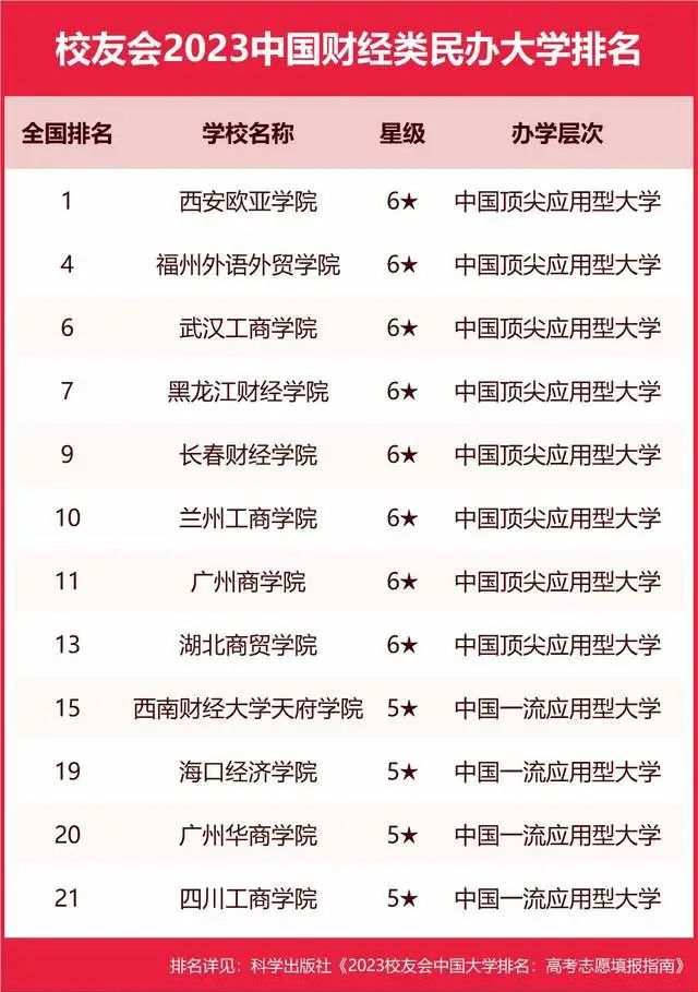 校友会2023中国财经类民办大学排名(部分)