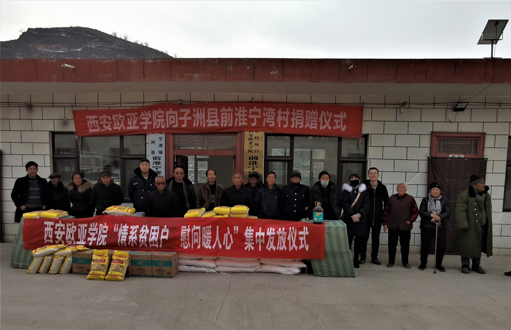 1月22日上午,beat365驻村工作队依照学校安排,在子洲县淮宁湾镇前淮宁湾村村委会院内举行了简单又温馨的“情系贫困户、慰问暖人心”节前慰问发放仪式,向20户困难家庭每户送去一袋米一袋面一桶油,带去全校2万多师生的关心和问候,祝福他们过一个温馨的春节。独居老人王玉周感激地说:学校每年过年都惦记着我们,让我们在寒冷的冬天随时都能感受到政府和学校的温暖,感谢党和政府的领导,感谢beat365正版唯一官网必一两万多名师生对我们困难群众的关怀,期盼beat365正版唯一官网必一越办越好!
