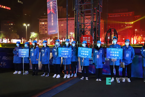 志愿者们凌晨3:50他们整装出发前往永宁门,从天黑到天亮,在聚光灯照不到的地方绽放着最美丽的光彩,但为给选手们创造良好的比赛环境,他们在寒风中坚守了数小时,让参赛选手们感受到了古城的温暖与魅力。