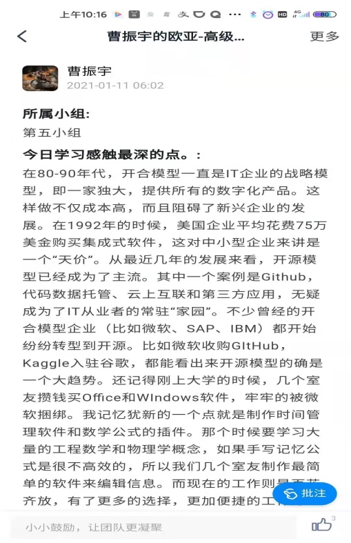 经过为期三天的培训学习,老师对数字化有了更全面的了解,实现了由1到2、3的变化。业务数字化使各位老师能够在自己研究的课题中,结合数字化进行进一步探索和扩展。学生收获更加巨大,学生通过本次学习成就了在数字化方面0到1的转变,无论是理论层面还是实操部分。钉钉大学讲师通过实践教学的方式,利用钉钉这一智能化数字平台,对企业数字化转型、组织数字化、业务数字化等做出了模范型的教学。学生充分了解到了数字化时代下自己所学专业应该如何同数字化结合,使今后的实习及就业发展变得更加清晰醒目。
