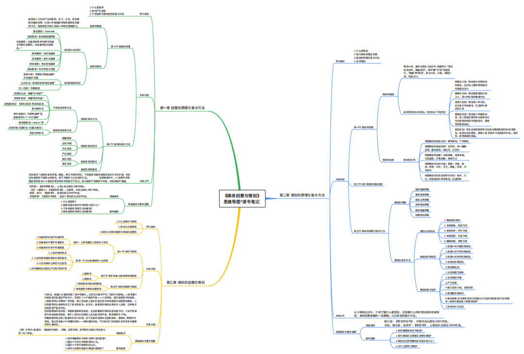 特点3:因在线授课学生没有教材,教师制作了每堂课的读书笔记思维导图供学生参考与学习。